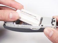 To release the battery, press the two tabs that are located directly above the battery towards the top of the phone at the same time.