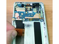 To check that there are no burnt components or oxidations inside the motherboard, the flex cable must be disconnected and the insulation / dissipation sheets of the various components of the logic board removed.