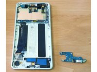 Looking closely at the microscope the part most exposed to water (as can be seen in step 6), small oxidations were found on the connection pins of the flat cable and the charging module that prevented communication with the motherboard of the sensor of fingerprints and virtual keys.
