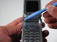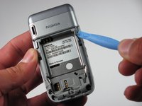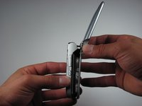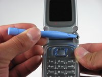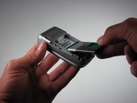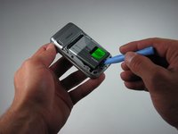 Insert the iPod opening tool between the base of the phone and the phone battery.