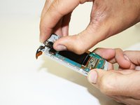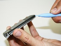 Using an iPod opening tool, pry open the case that houses the LCD screens by inserting it at the bottom as shown.