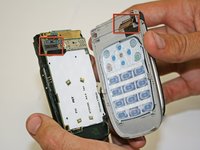 With the front half of the phone, push the keypad towards the removed portion of the phone.