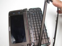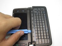 Open the phone up and use the plastic opening tool to remove the cover to the keyboard.