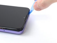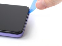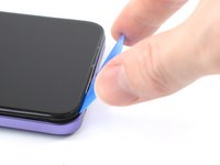 Position the opening pick at a steep downward angle between the back cover and the screen assembly.
