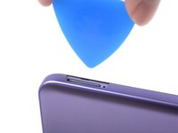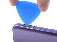 Insert an opening pick under the small notch in the SIM card tray slot.