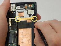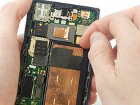 Slide the spudger down towards the bottom left corner of the device, continuing to gently pry upwards. The screen will now be slightly separated from the back of the phone.