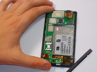 Insert the spudger (non damaging nylon stick tool) into the crevice located between the back cover of the phone and the body of the phone.