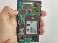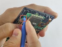 Unclasp the motherboard from the black case clasps using a plastic opening tool.
