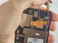 The audio jack is the part of the phone with the circular opening right above the motherboard. After the battery and motherboard have been removed, the audio jack can be easily removed.