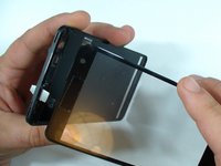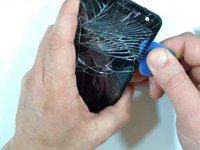 With a cutter separate the glass a little bit to make a room for the plastic pick or other plastic tool.