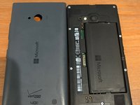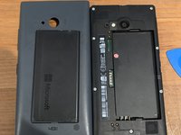 The back should now be removed exposing the battery, SIM card, and SD card on the back of the phone