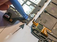 Locate the ribbon cable on the back of the logic board and carefully loosen the connector with a plastic opening tool. Be sure you are prying on the cable's connector, and not on the plug on the logic board.