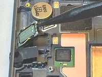 *Optional* Remove the copper tape at the top right corner of the phone with the precise tweezers.