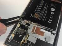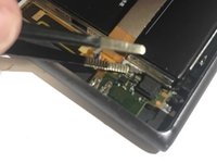 Remove the motherboard by sliding tweezers between it and the back of the screen. Lift up.