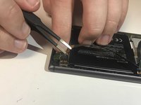 Insert the tweezers under the corner of the battery, and lift out.