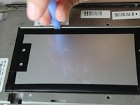 On the back side of the middle panel, pry the battery using the plastic opening tools.