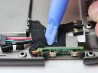 Remove the tape which holds the wiring to the battery using a plastic opening tool.