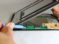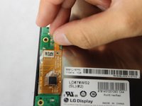 Gently lift and peel the orange and grey ribbon connectors to disconnect the screen and motherboard.