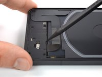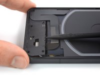 Insert an opening pick underneath the bottom left edge of the charging coil assembly.