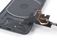 Carefully fold the charging coil to the top edge of the phone to access the bottom edge of the motherboard cover.