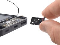Insert a SIM eject tool, bit, or straightened paper clip into the SIM card tray hole on the bottom edge of the phone.