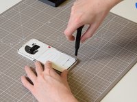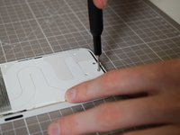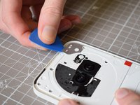 Using the opening pick, pry up an edge of the sticker and remove it.