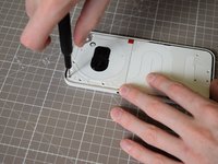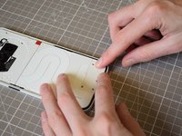 Using a heat gun, or a hair dryer, apply heat to the back panel.