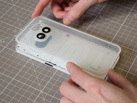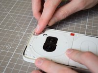 Very gradually align and place the back panel down, of course ensuring the correct orientation, and aligning the camera units with the lenses.