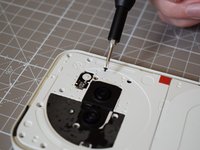 It is hard to see, because it has another one of those pesky tiny weeny stickers on its head, but there is a phillips screw beneath the sticker we have just removed in the previous step.