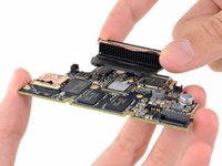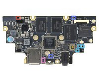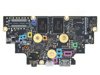 With the motherboard finally free and de-shielded, we get a look at the notable players: