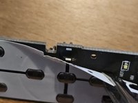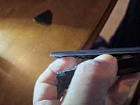 At the top of the remote, some resistance will be met when trying to complete the separation. This is because that glossy triangle piece of plastic adjoins them. Carefully pop it off (there are no electronics there).