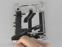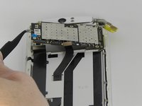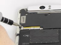 Use tweezers to peel the black strip from the sticky tape attached to the phone so that the black strip will slide through the phone once the screen is removed.