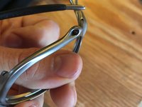 At my very first try I didn't file the inside of the nose bridge bore much. Result: I wasn't able to push pin fully back in. I turned the frame around, pushed it back out, tried a new pin - it worked.