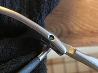 For Penny only, I recommend re-inserting the orbital screws to add more stiffness to the frame for the follwing steps (closed structures can take significantly more load). Penny is the only X-Metal with spring hinges on its ear stems. Removing the latter, requires putting quite some load onto the frame.