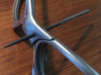 Place the nose bridge front down on the cloth-covered tube and slowly screw down the pusher tip until it just touches the pin