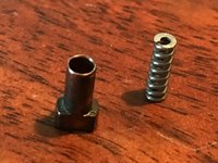 2. picture: On one side of my Penny, the spring hinge assembly came out. For the curious, this is what it looks like: a spiral spring and a cam. It's easy to reinsert and if it doesn't come out by itself, leave it in. There's no need to remove it.