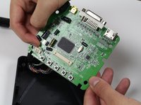 • Use your finger(s) to start lifting the motherboard from the control box casing. While doing so, use your other hand to push the DVI connector into the control box casing.