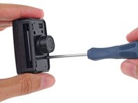 The positional camera itself is attached to its stand with two small clips. Once detached, we're free to crack it open to find the real goodies inside.