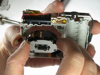 Use the tweezers to remove the ribbon cable near the shutter button.