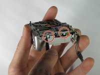 Remove the 2 exposed screws on opposite sides of the camera. Turn the screws counter-clockwise to remove.
