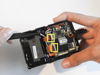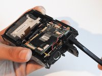 Slowly and carefully separate the front and back of the camera, exposing the electrical ribbons.