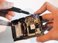 Using the Phillips #00 screwdriver, unscrew the two screws on the side of the camera.