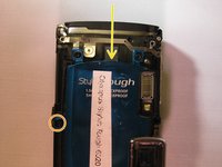 Using a Phillips 00 screwdriver, unscrew the two 3.9mm screws to the right of the cursor pad on the U-shaped frame.