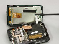 Using the spudger on the edge of the screen to lift it and remove the metal backing attached to the screen.