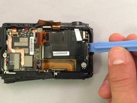 • Using the spudger to gently pry the screen away from the body of the camera.