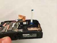 Remove the Phillips #00 screw and the silver metal tensioner below the screw. Remove the Phillips screw (size) next to the ribbon cable.
