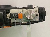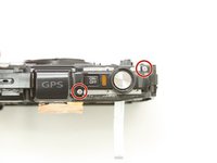 Remove the 2 Phillips (size) screws from the plastic housing surrounding the shutter button