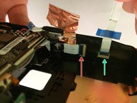 At the base of the long ribbon, remove the blue tape and use the spudger to flip its clasp lifting it out.