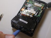 Using the plastic opening tool, pry the black component out of the cameras casing.