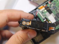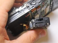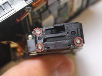 Locate and remove the two screws on the left side of the camera using the Phillips #000, then remove the metal plates they rest on.